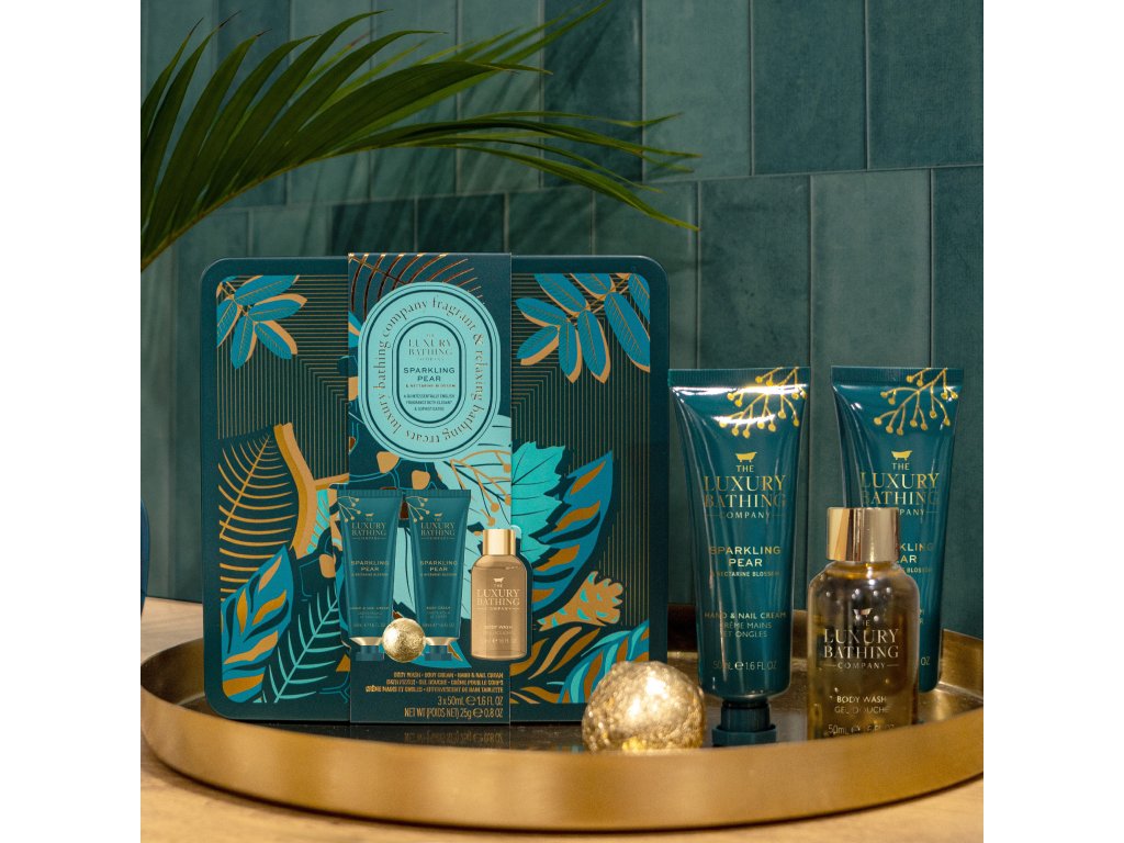 Grace Cole – Sparkling Pear & Nectarine Blossom, dárková sada v plechové dóze, 4 ks