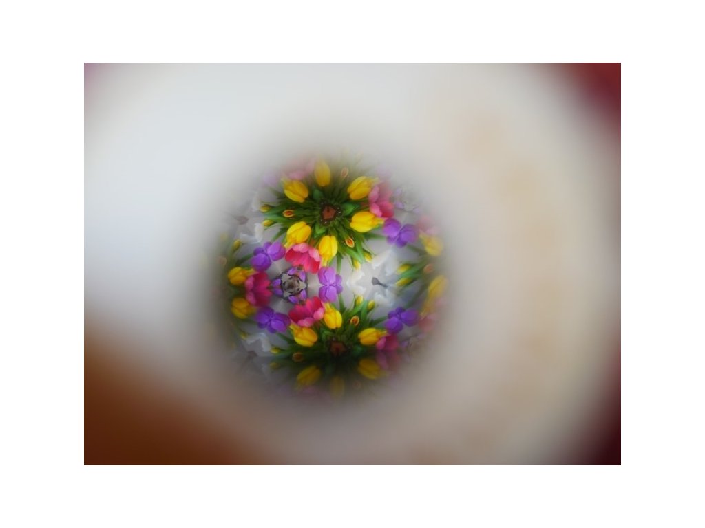 Výsledný optický krasohled se skleněnou kuličkou zobrazuje mozaiku složenou z okolního světa.