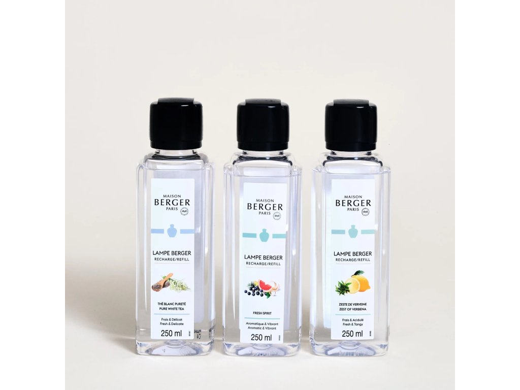 Maison Berger – Sada 3 náplní do katalytické lampy Estival: Pure White Tea, Fresh Spirit & Zest of Verbena, 3×250 ml