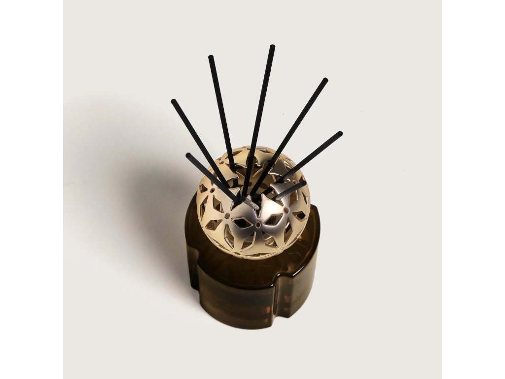 Designový difuzér z lakovaného skla v elegantním čokoládovém tónu, doplněný o zlatou korunku Pomelis inspirovanou historickými pomandry – symbolem harmonie, světla a francouzského stylu.200 ml interiérové vůně Vanilla Magnificence