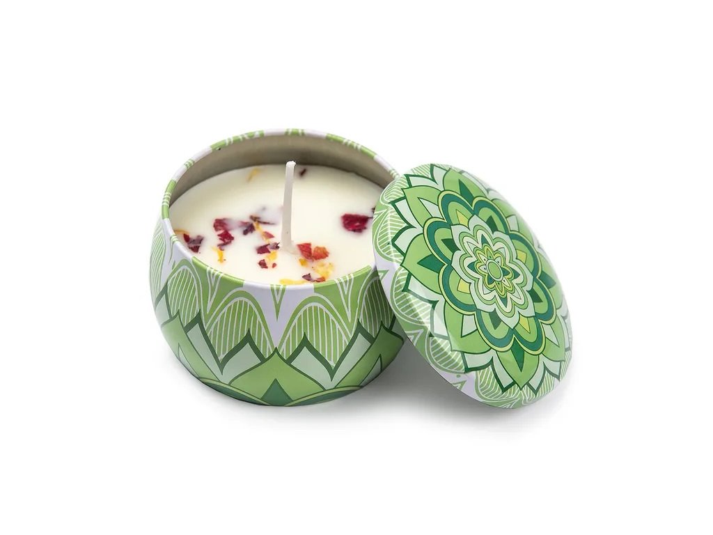 Objevte sílu vůní a krásy v jednom – tato mandalová svíčka s osvěžující citronovou vůní v sobě propojuje design, spiritualitu a smyslový zážitek. Plechová dóza s jemnou mandalou v zelených tónech působí uklidňujícím dojmem a po dohoření ji můžete dál využít jako krabičku na drobnosti nebo dekoraci.