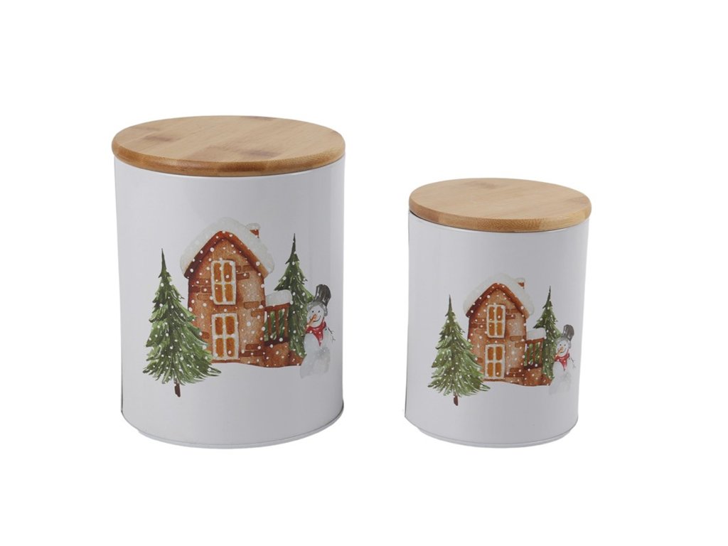 Sada vánočních plechových dóz se dřevěným víkem, 2 ks