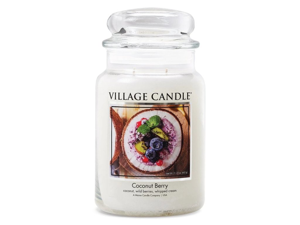 Jejich charakteristickým prvkem jsou dva knoty, které garantují rovnoměrné hoření a vysokou intenzitu provonění. Village Candle vytváří vůně inspirované přírodou, gurmánskými pochoutkami i nezapomenutelnými zážitky — a přesně taková je i Coconut Berry.