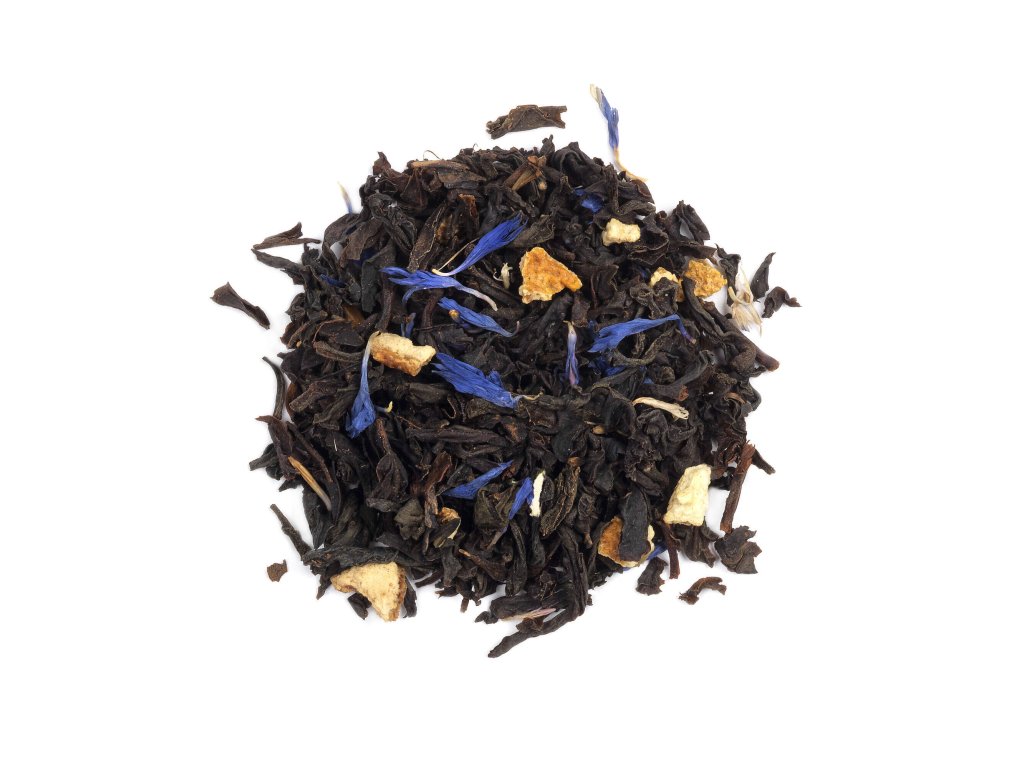 Složení: černý čaj, pomerančová kůra, aroma bergamotu, 1% okvětní lístky chrpy